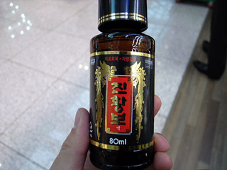 はやくも出国の朝。余ったお金でコレ購入。3,000W(約360円)の高麗人参ドリンク。効きそうな味です(笑)