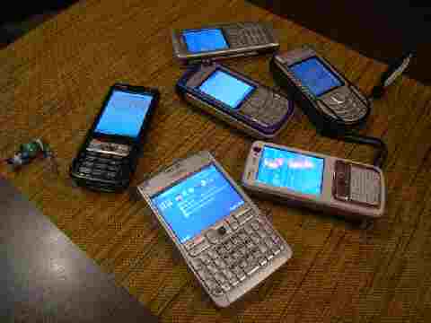 ただいま夜の10時過ぎた。遅めのディナー中。今日は雨が降ったりやんだりで気温も低め。半袖の衣類しか持って来なかったので、ZARAにてパーカーを購入。サイズが心配だったけど、試着したらピッタリで即決。で、写真。今回は二人で6台のNOKIA端末を持参。マニアック過ぎですね。
