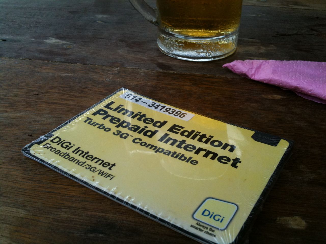 街中で5日間パケットし放題なる「DIGI」ブランドのSIMカードを発見、露天の怪しいおやじから約1,000円で購入。ホテルに戻り開封すると、どうやらこのキャリアのモバイルルータがないとアクティベート(初期設定)できないらしく、騙されたとまあ半ば諦めてたが、偶然このキャリアのショップを発見し、SIMを見せて交渉するとすぐに開通処理してくれた。持参したiPhone(SIMフリー版)とモバイルルータ(こちらもSIMフリー)で、パソコンからもiPhoneからも快適にネットしています。docomoもSoftBankも海外パケットし放題となるサービスを開始しているけど、5日間で約1,000円とはならないですからね。