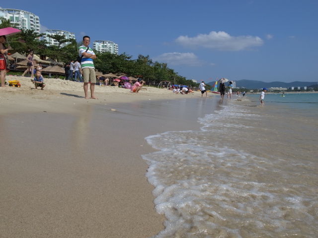 中国の都市部と違い人が皆優しいです。これはどの国も共通で田舎は温和です。その代わり中国語以外の言葉は通じないと思うべし。いま上海のホテルにいますが、このホテルでは英語出来ないスタッフがいないぐらいだし、すぐにこちらが日本人だと察し日本語で話しかけてきます。海南島では100%中国人だと決めてかかられます。毎回中国語で「日本人です」と言うしかない。話し掛けられる頻度は赤子連れなので男同士の旅行の10倍以上だし、現地人も旅行者もすべてが笑顔で話し掛けてくれる。こんな経験は今だけかもな。